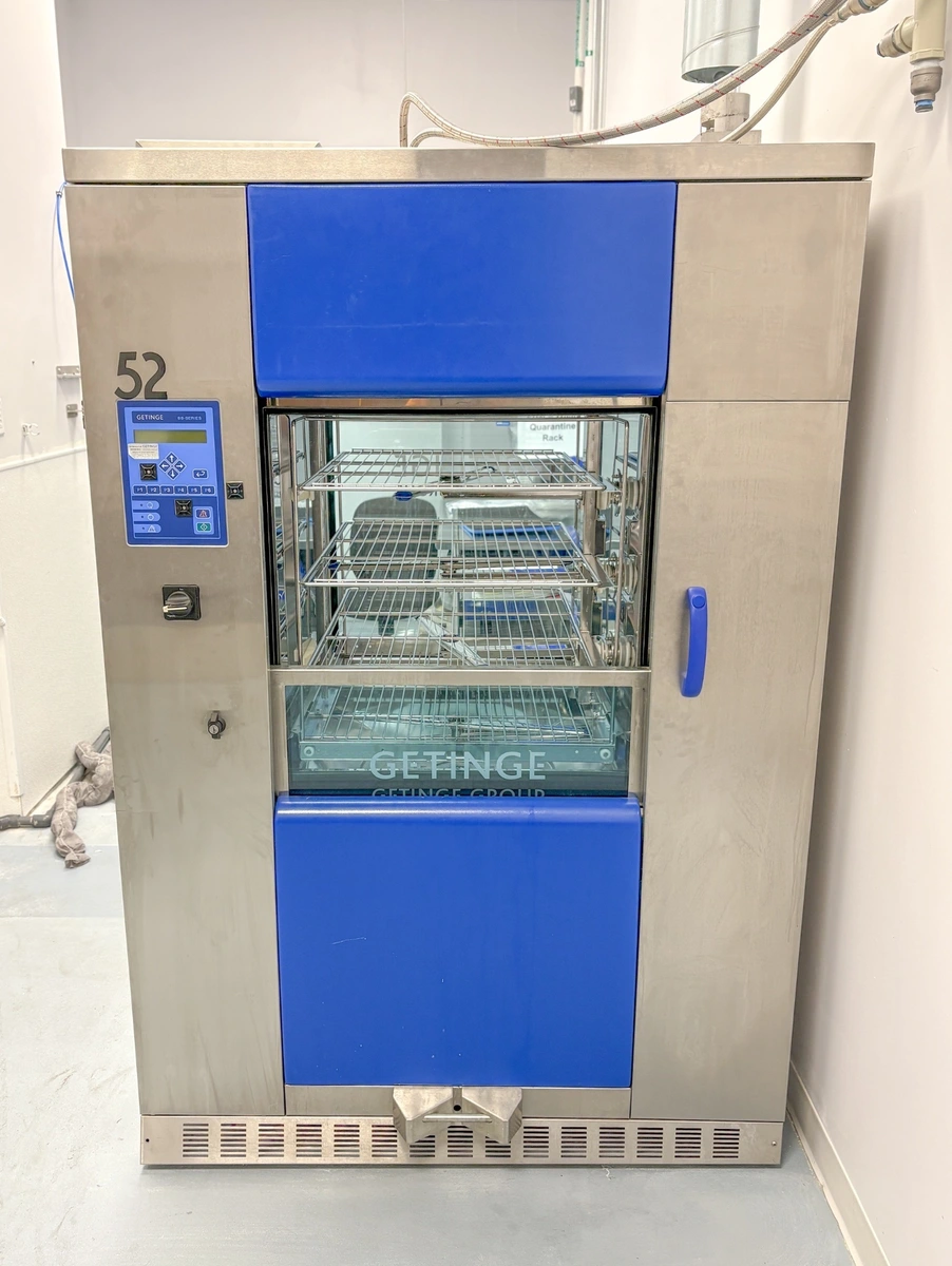 Well-maintained Getinge 88-Series washer/disinfector available. Designed for high-capacity instrument reprocessing with durable stainless-steel construction, automated cleaning cycles, and efficient thermal disinfection. Used in a medical device manufacturing facility to sterilize surgical instruments.