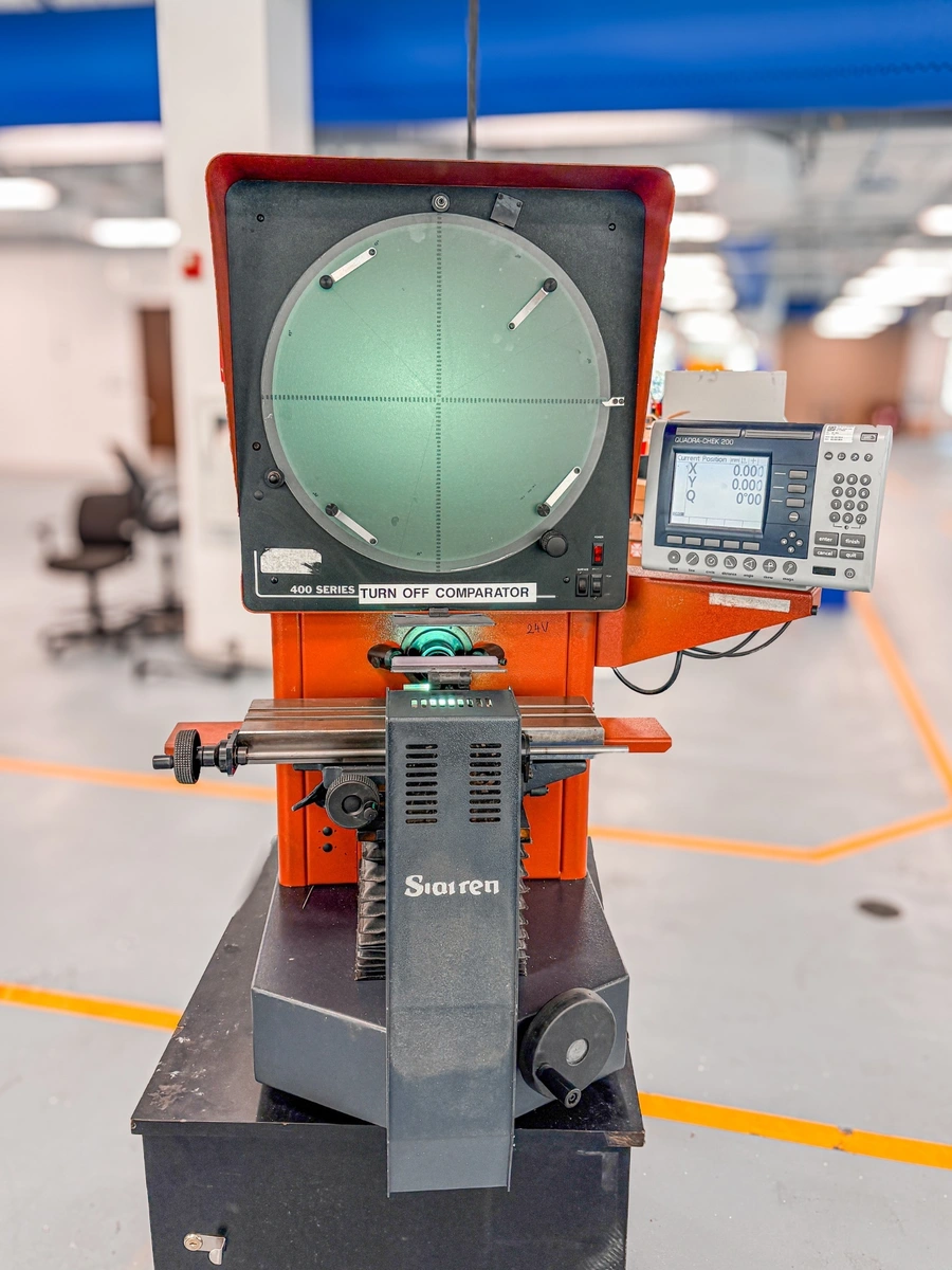 Starrett HB400 Horizontal Optical Comparator (with stand) in excellent working condition. This unit features a 16” projection screen and is equipped with a Quadra-Chek 200 digital readout (DRO) for precise X-Y measurement and easy data readout. The machine has been well maintained and was last calibrated in 2024. It has not been used since January of 2025. Ready for inspection and measurement work in a machine shop, tool room, or quality control environment. Solid, accurate comparator known for reliability and precision.