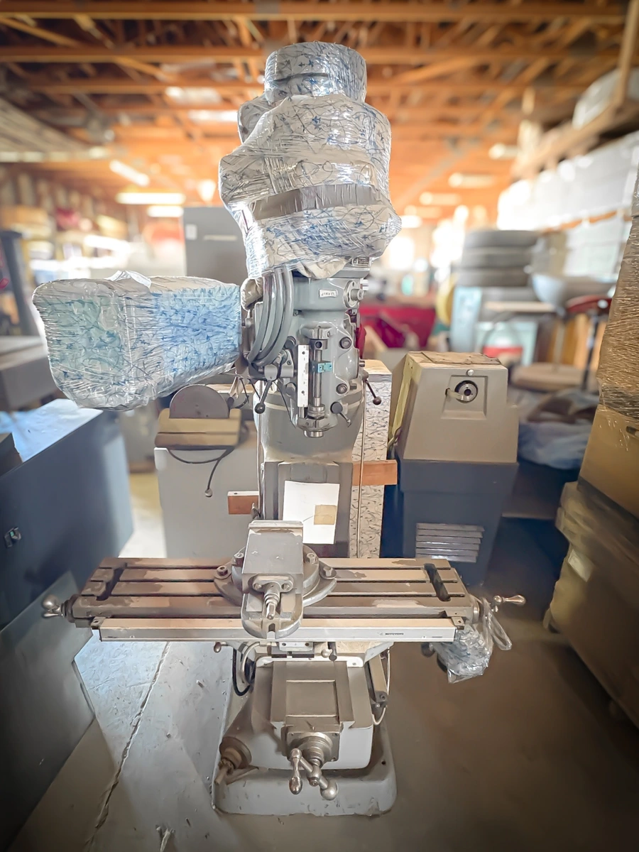 Bridgeport series 1 with 4hp motor, DRO, and power feed on X. It’s in excellent shape. As you can see from the pictures, this machines is in storage and is not under power. The owner has priced this one at $4,000 firm.